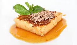 Una fuente para horno que tenga capadidad de 2 litros aproximadamente, y que ojalá sea gruesa para que el calor pase lentamente a la preparación. Si es una fuente muy delgada se cocerá más rápido y quedarán con burbujitas, como más esponjoso. En una fuente gruesa quedará con una textura más cremosa como aflanalada.